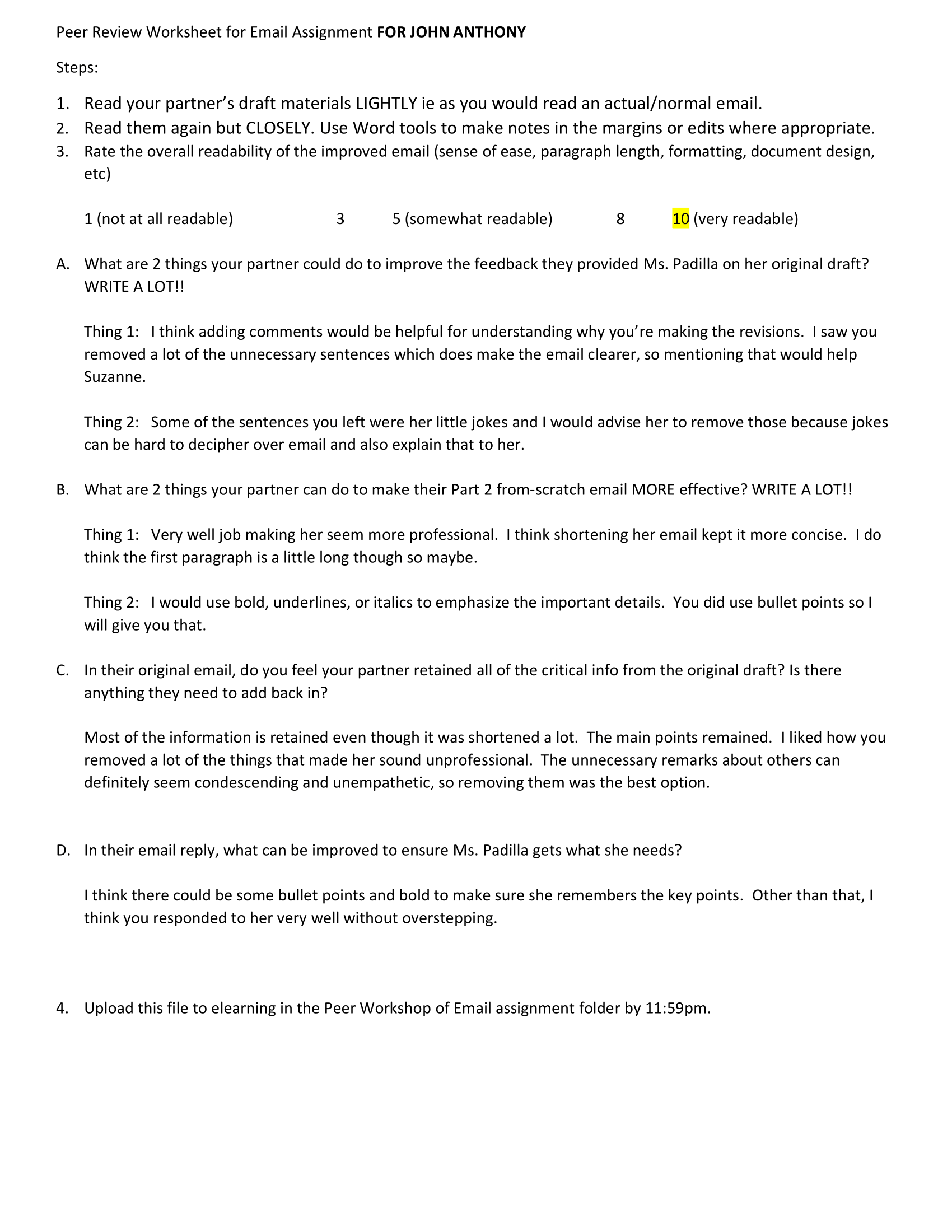 As part of a project, I reviewed a draft email from a supervisor and provided constructive feedback to improve its clarity, tone, and effectiveness. This included proofreading for grammar and professionalism, considering the needs of the intended audience, and maintaining an appropriate tone. I also created a fully revised version of the email to demonstrate how the message could be more effectively communicated in a business context.